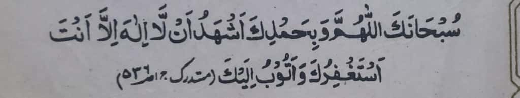 Translation: O Allah, You are pure and I praise You. And I bear witness that there is no god but You. I seek Your forgiveness and I repent to You.